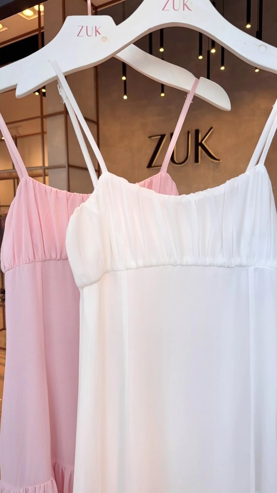 Descrição do produto: Vestido midi confeccionado em chiffon. Possui alças finas, detalhe drapeado no peito, camada única na saia com drapeaado. Fechamento por zíper nas costas.